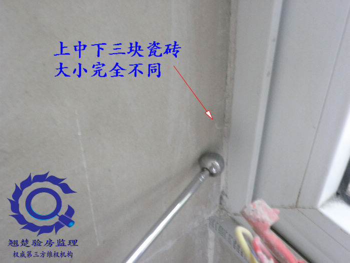 直接導致了內外墻磚大小差異,直觀感受看上去如同墻是斜著的一般。