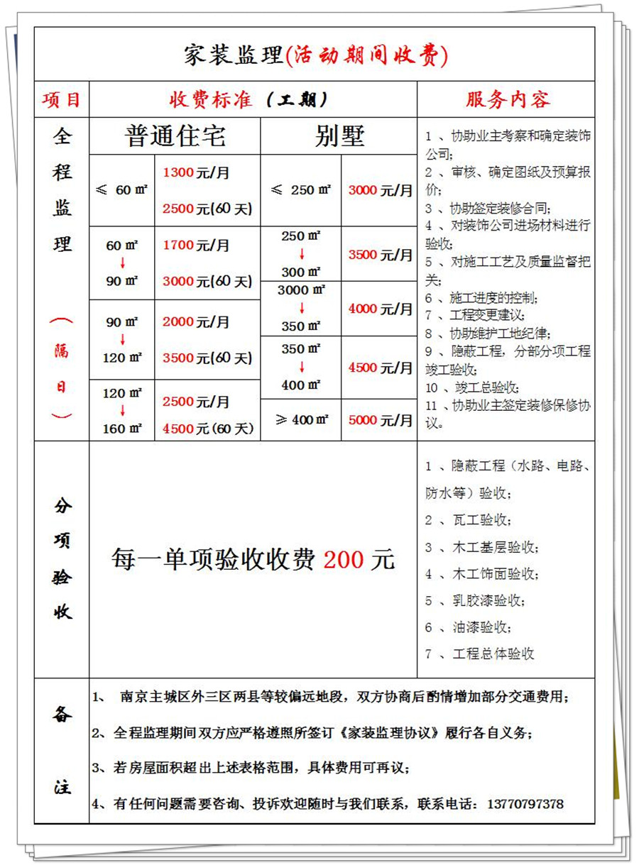 優惠價格請參照“家裝監理收費標準”