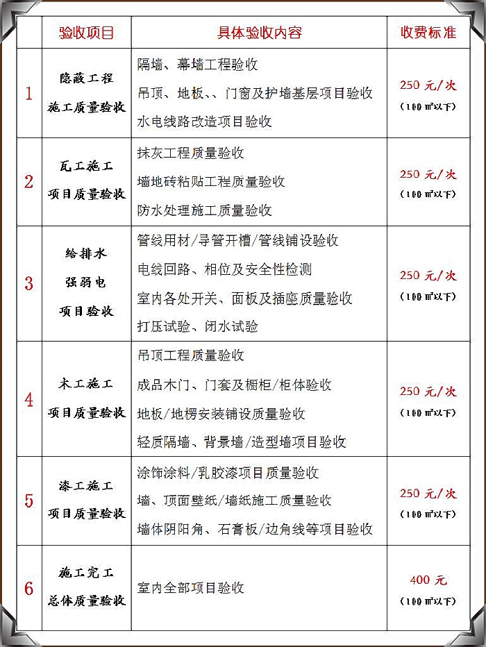 家裝分項驗收項目明細